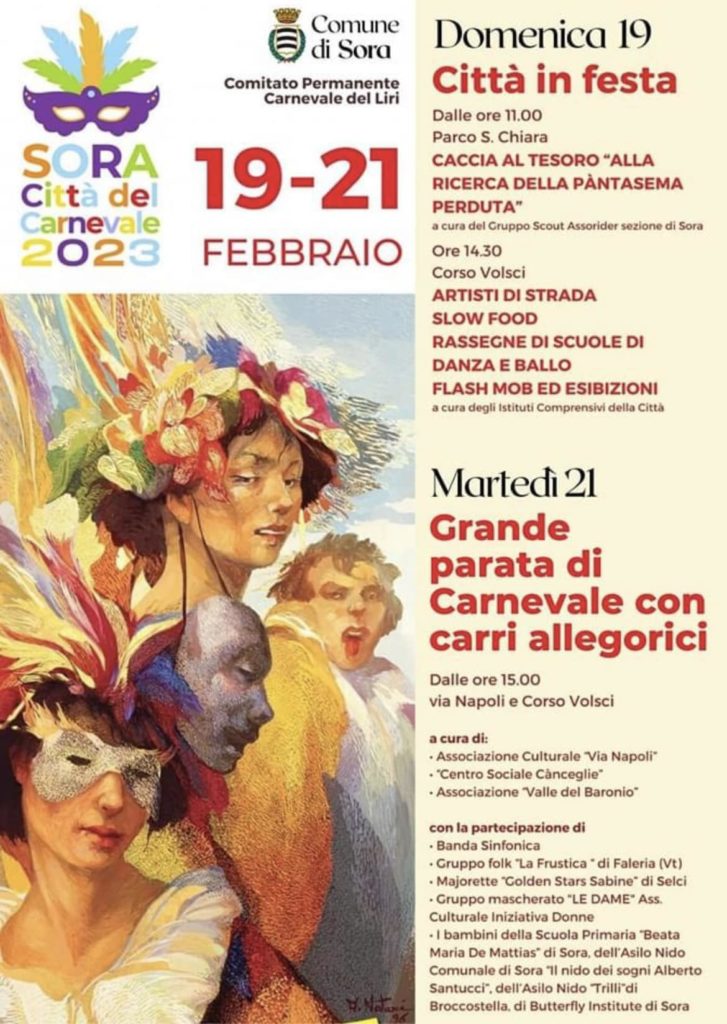 Carnevale Sora 2023: il programma degli eventi in riva al Liri dal 19 al 21 febbraio