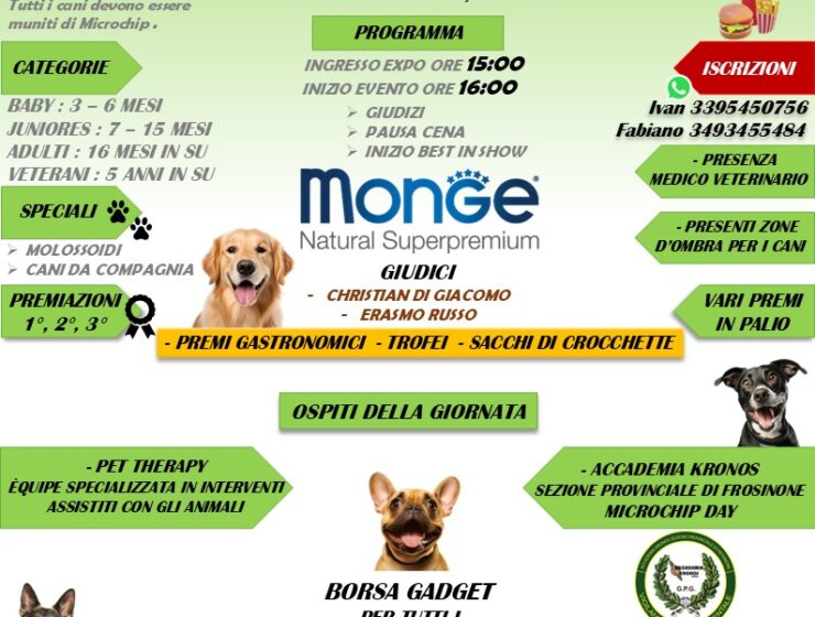 Sabato 5 luglio Alatri ospiterà la 4ª Esposizione Cinofila Amatoriale, un evento aperto a tutti…