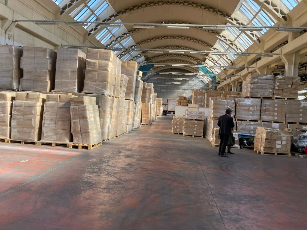 Centinaia di scatoloni, con vistose scritte in cinese, e destinati alle Asl del Lazio. Sono quelli stipati in un capannone della ex caserma Cerimant di via Prenestina a Roma, sede dell’hub logistico della Protezione civile del Lazio per affrontare l’emergenza Covid.