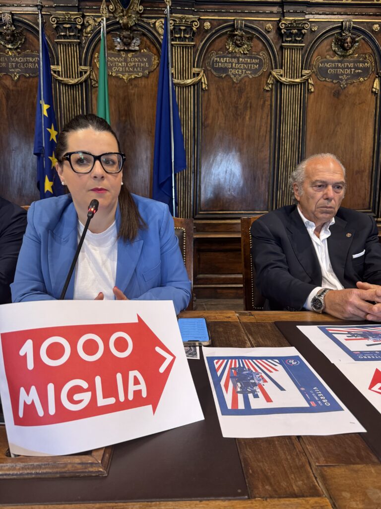 “La 1000 Miglia torna a Viterbo e quest’anno in una modalità nuova – ha sottolineato la sindaca Chiara Frontini in occasione dell’odierna conferenza stampa a Palazzo dei Priori, nell’ambito della quale si è parlato dei principali eventi che Viterbo ospiterà a partire da domani 13 fino a domenica 16 giugno -. Quello di quest’anno non sarà un semplice passaggio, ma la rievocazione storica farà una sosta in città. Un’occasione di visibilità e promozione del nostro territorio e una bellissima manifestazione da non perdere. L’amministrazione ha investito anche quest’anno per inserire Viterbo nel percorso della 1000 miglia. Grazie a tutti coloro che rendono possibile il passaggio.