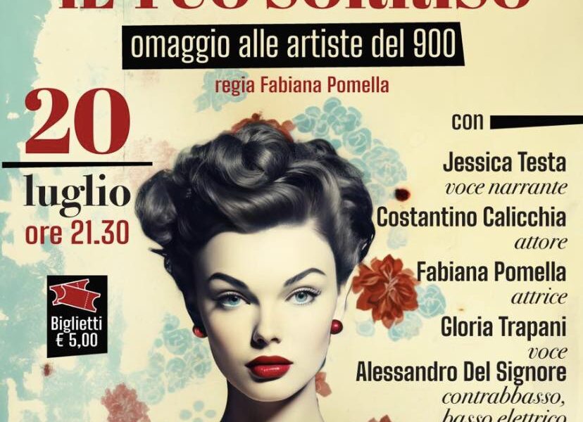 Nell’ambito della rassegna Teatro tra Storia e Spiritualità 2° edizione, domenica 20 luglio alle ore 21.30 il Chiostro di San Francesco ospiterà lo spettacolo dal titolo: “RIPENSO IL TUO SORRISO” per la regia di Fabiana Pomella. In scena gli attori Costantino Calicchia e Fabiana Pomella, la voce narrante di Jessica Testa, il Maestro Alessandro Del Signore al contrabbasso e basso elettrico e la cantante Gloria Trapani.