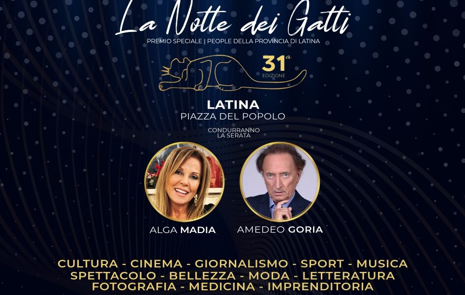 Sabato 13 settembre, invece, a piazza del Popolo si svolgerà la 31esima edizione di “La notte dei gatti”, da un’idea di Virginio Moro. Condurranno la serata Amedeo Goria e Alga Madia. Verrà assegnato il premio speciale People della provincia di Latina, nonché i riconoscimenti a coloro che si sono distinti nel corso dello scorso anno. Nella serata, che avrà inizio alle ore 21, live music di Daniela Martani e Cristiano Giunti.