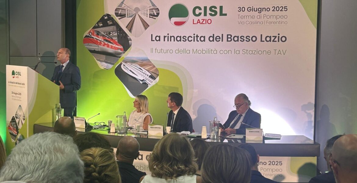 Il Sindaco, Riccardo Mastrangeli, ha infine ringraziato il segretario della Cisl Lazio, Enrico Coppotelli, i dirigenti e i rappresentanti della sigla sindacale e tutti i relatori intervenuti: il ministro degli esteri e vicepresidente del Consiglio Antonio Tajani, il presidente della Regione Lazio, Francesco Rocca, il sottosegretario di Stato alla Presidenza del Consiglio dei ministri con delega per il Sud Luigi Sbarra, i parlamentari, i consiglieri regionali, il presidente della provincia Luca Di Stefano, i presidenti di Unindustria Frosinone Corrado Savoriti e di Confimprese Guido D’Amico, i sindaci e tutti gli stakeholder. “Un ringraziamento particolare – ha concluso Mastrangeli –va rivolto al presidente Rocca per l’attenzione mostrata, ancora una volta, nei confronti del nostro territorio, definendo la stazione Tav di Ferentino un’opera ‘non-negoziabile’, e all’on. Nicola Ottaviani, che ha già convocato, giovedì, presso il Ministero dei Trasporti, la prima riunione del Tavolo Tecnico per la realizzazione della stazione TAV di Ferentino, a cui sarò presente”.