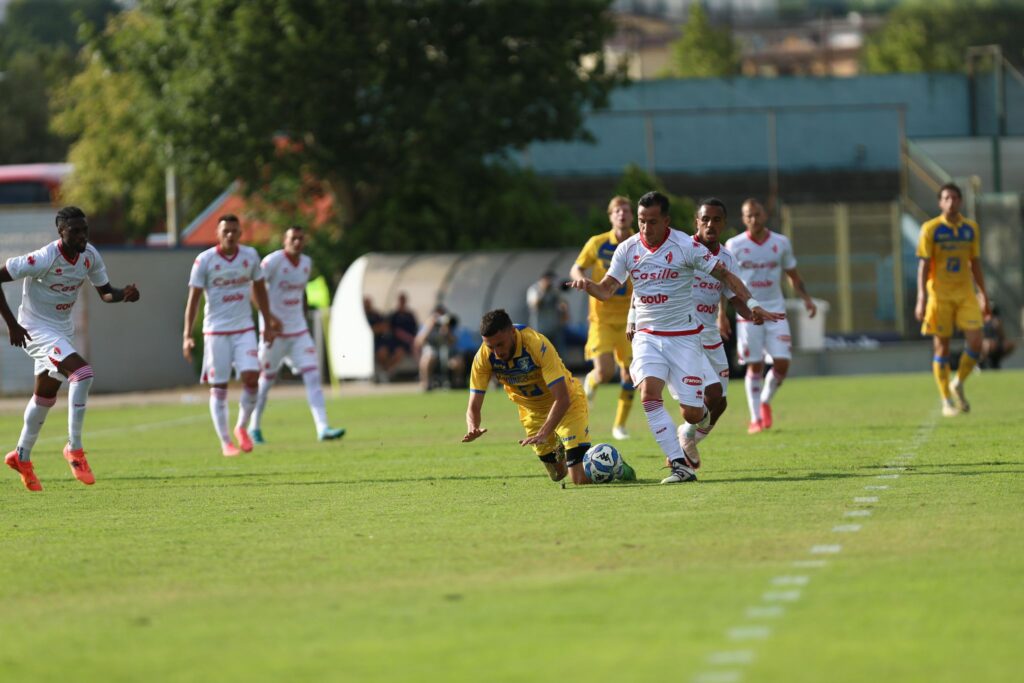 Nell’amichevole di Capo i Prati Frosinone e Bari si sono fronteggiati senza troppi tatticismi, dando vita ad una gara ricca di reti, con i pugliesi alfine vittoriosi col roboante punteggio di 4-3. Come sempre in queste circostanze i tecnici Vivarini e Longo (ex giallazzurro) hanno fatto esperimenti e prove, utilizzando tutti i giocatori a loro disposizione. Ritmi non proprio esasperati, nel pieno rispetto del copione delle amichevoli di luglio. Anche stavolta parecchi assenti nella fila ciociare perché ai lungodegenti Kalaj e Anthony Oyono si sono aggiunti il nazionale Vural e gli acciaccati di stagione Caso, Mazzitelli, Monterisi, Gelli e Lusuardi.