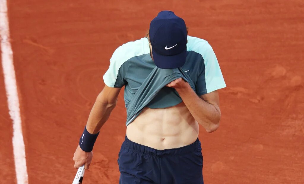 La fasciatura sotto il ginocchio sinistro è li, portatrice di vaghe inquietudini, ma Jannik Sinner…